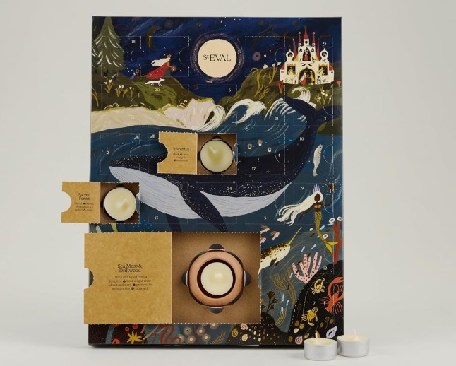 This stunning St Eval Christmas Tealight Advent Calendar has totally captured my heart, featuring a breathtaking scene of the North Cornish coast with all the magical sea creatures that reside there. Behind every numbered door you'll discover a selection of 24 gorgeously scented tealights, as well as a gold-dusted tealight holder.