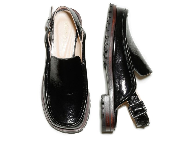 I only discovered Mafalda and its stunning, hand-made shoes this week, but I'm already totally obsessed. The Dominic loafers are a slingback style made of black patent leather, featuring a square toe and a smooth, structured upper. The result is a shoe that's stable, comfortable and totally chic.