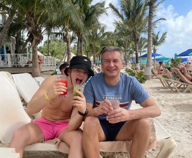 ‘You never know what’s coming. Day to day feels normal, but when you look back, you realise how much you’ve lost,’ adds Ollie. ‘When he was first diagnosed, he could walk around a buffet on holiday in Mexico. Now I couldn’t imagine that.’