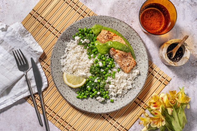 Keen to see what the fuss is about, I sign up for three meals a week for a month. Among the recipes are baked salmon in a green goddess dressing – while the salmon has the vitamin D, which supports bone health, the lumious green dressing is made from a healthy mix of spinach, mint, lemon, feta and honey.