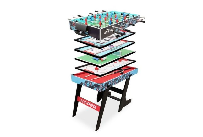 Bring endless fun home with the Hy-Pro 4ft 12 in 1 Folding Multi Game Table, packed with 12 exciting games for all ages. Its easy-fold, slimline design makes storage simple, while quick game switches keep the action going. Perfect for family entertainment and suitable for ages five and up.