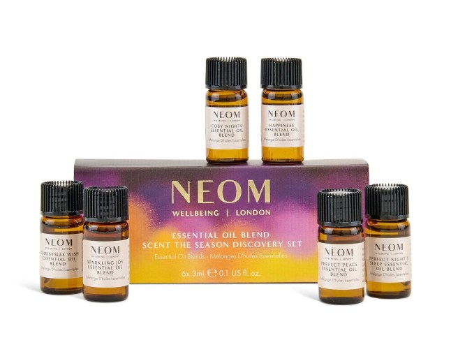 Stock up on Neom's much-loved oil Essential Oil Blends with this six piece set. Inside you'll find the Cosy Nights Essential Oil Blend 3ml, Christmas Wish Essential Oil Blend 3ml, Perfect Peace Essential Oil Blend 3ml, Sparkling Joy Essential Oil Blend 3ml, Happiness Essential Oil Blend 3ml, and Perfect Night’s Sleep Essential Oil Blend 3ml.