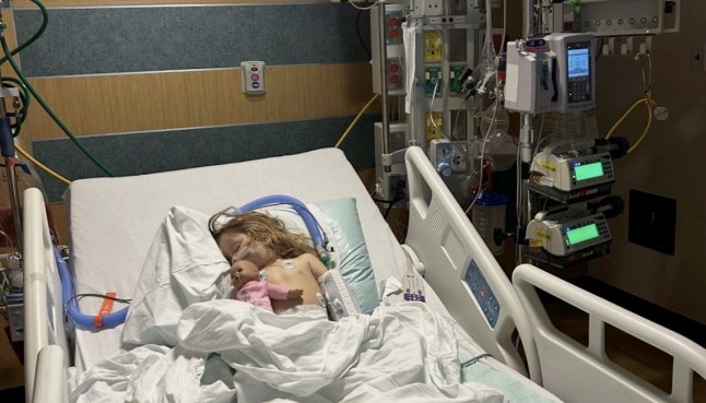 Soon, the youngster was airlifted to the paediatric ICU, a step that confirmed just how serious the infection had become. Destiny said, ‘After two days, they life-flighted her to the PICU, they were giving her breathing treatments every two hours, her oxygen levels kept going down and down.’ She added: ‘One minute she’d be okay, and the next she wouldn’t, it was very, very scary.’ (Picture: Destiny Smith/SWNS)