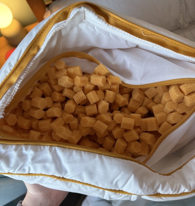 The Fine Bedding Co agrees that all these one-size-fits-all pillows we’re used to withstanding don’t necessarily fit the bill, so to help us get the ~perfect~ level of firmness they released a pillow that could be personalised and adjusted to suit you.