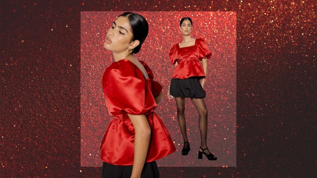 The chic red Nobody’s Child satin top that elevates jeans for every occasion