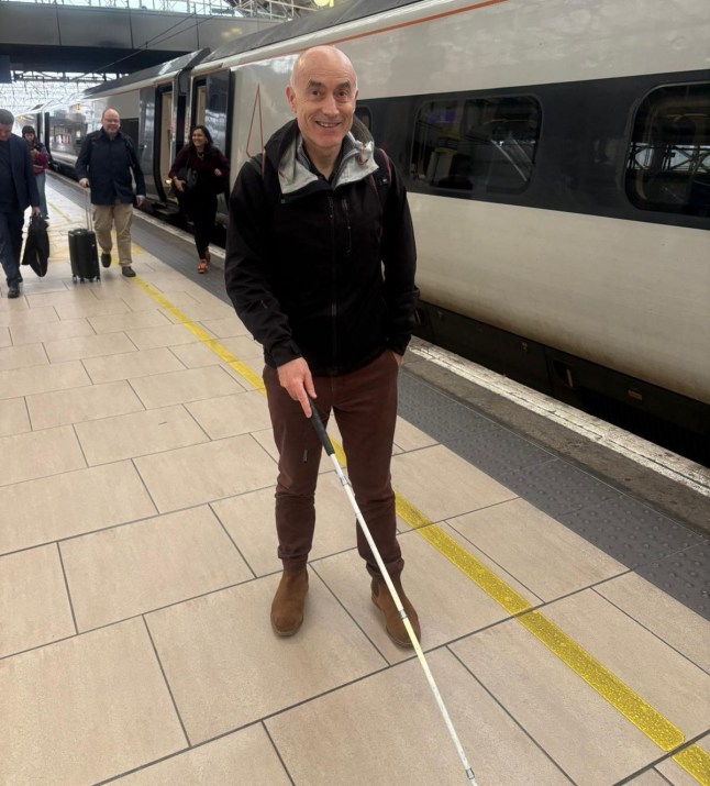 ‘I reached out to the Royal National Institute of Blind People (RNIB) who provided really useful advice and guidance on how to relearn how to use my iPhone, where to go to get long cane training, and provided the occupational assessment so I could get the technology I needed at work.